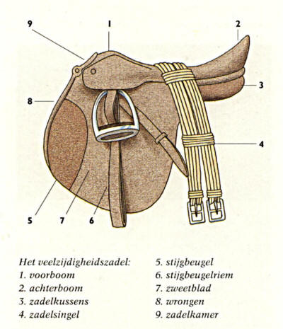 Trek daarna het zadel, sjabrak en de gelpad naar achter zodat ze vlak onder de schoft liggen, schuif je hand onder het sjabrak om het los te maken van de huid van het paard om schuren tegen te gaan.